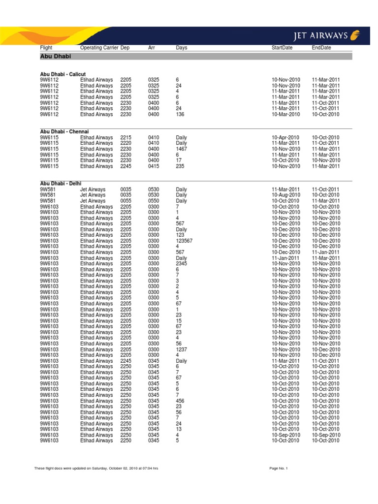 Source : www.scribd.comEtihad Airways and Jet Airways Flight Schedules from Abu Dhabi by
