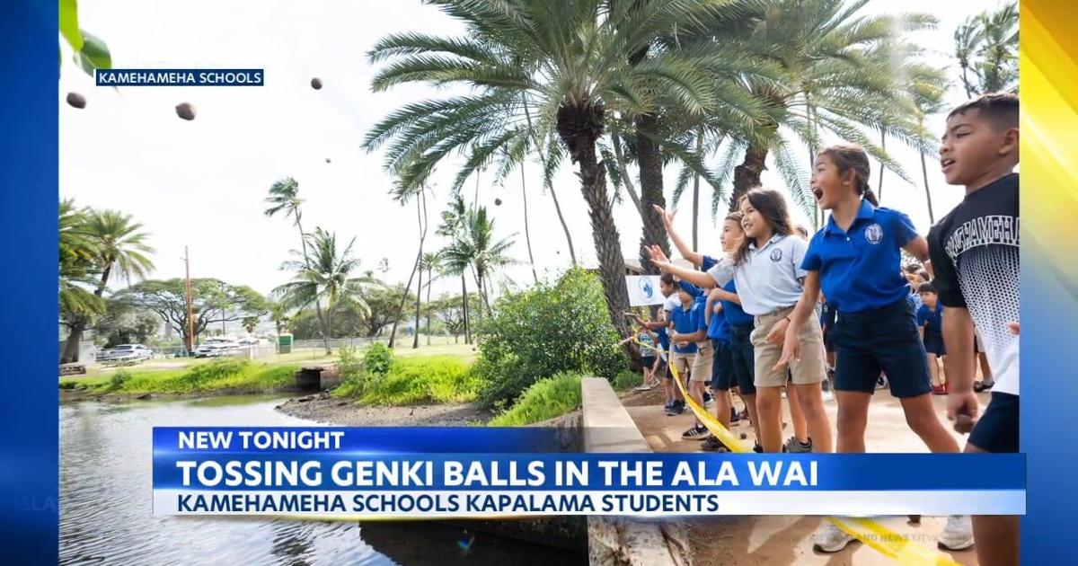 Source : www.kitv.comKamehameha students toss genki balls, to help clean up the Ala Wai