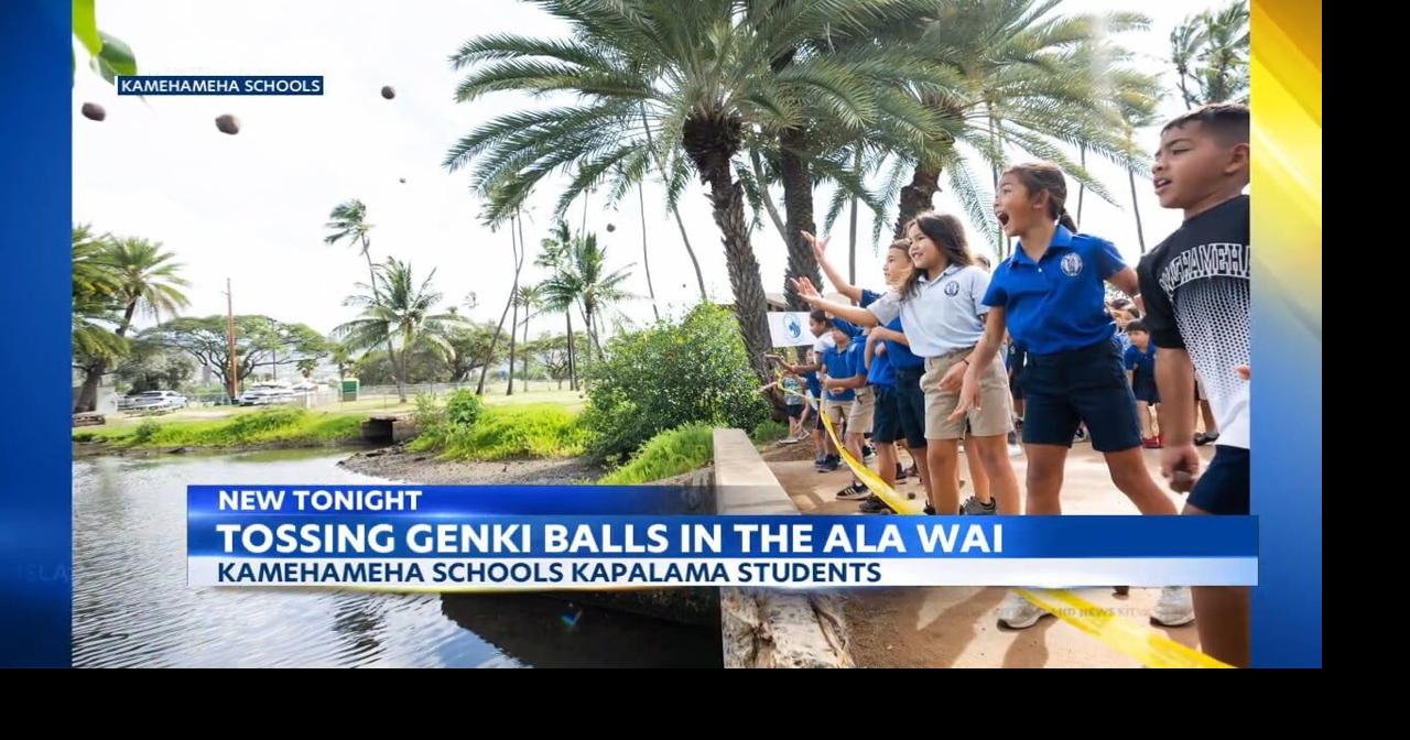 Source : www.kitv.comKamehameha students toss genki balls, to help clean up the Ala Wai