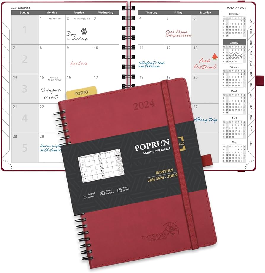 Source : www.amazon.comPOPRUN 2024 Monthly Planner Spiral Bound (6.5” x 8.5”) 18 Months